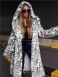 Damski Płaszcz Ze Sztucznego Futra Z Kapturem I Nadrukiem W Panterkę Otwartym Przodem