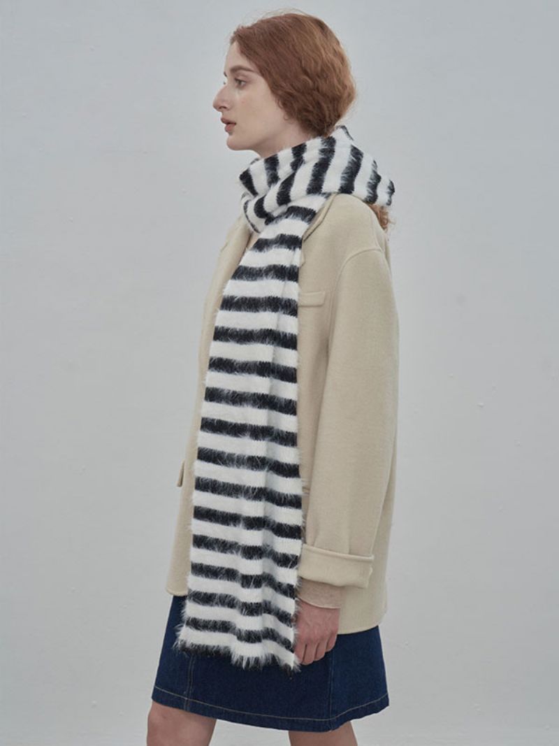 Damski Szalik Wysokiej Jakości W Paski Z Włókna Zimowego Ciepłego Długiego Szalika