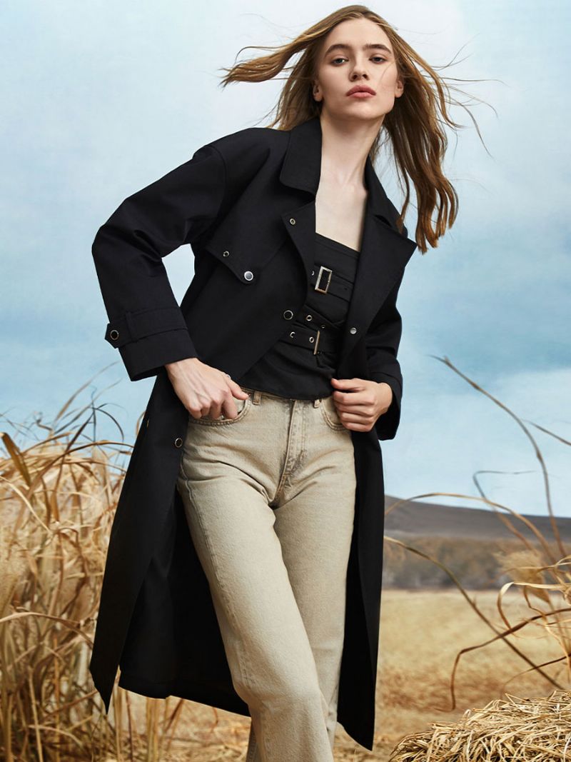 Damski Trencz Z Kołnierzykiem I Szarfą Długimi Rękawami Jesienno-wiosenną Odzieżą Wierzchnią
