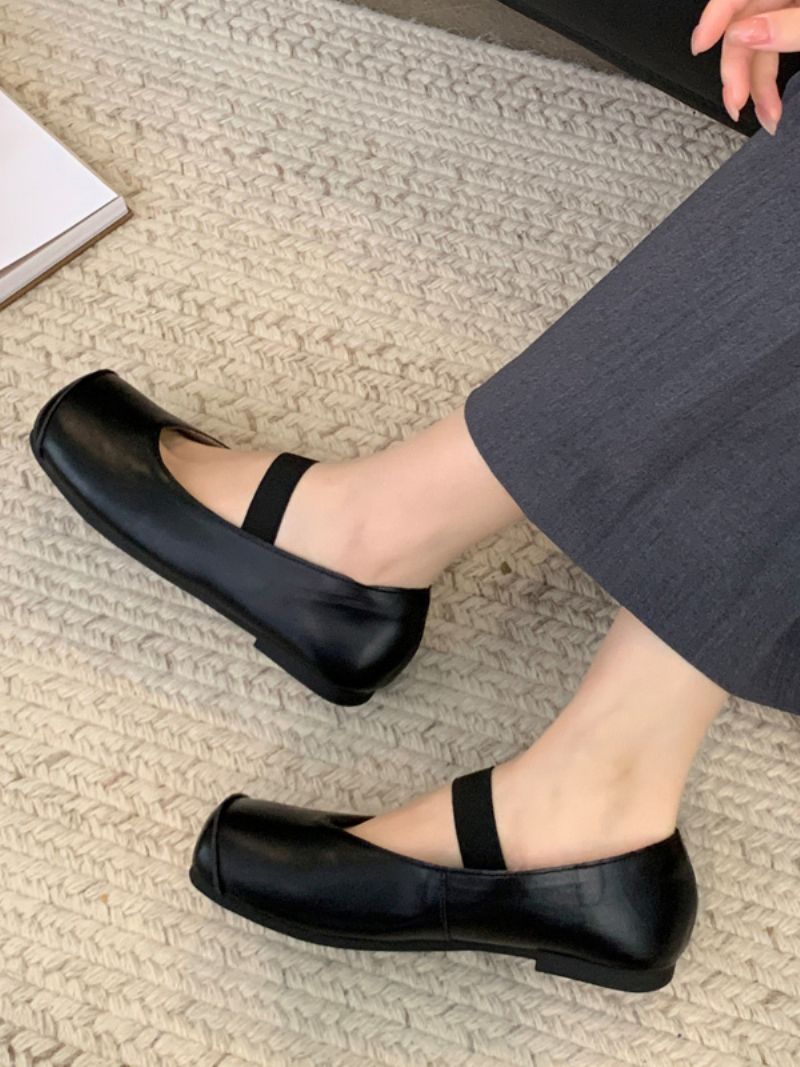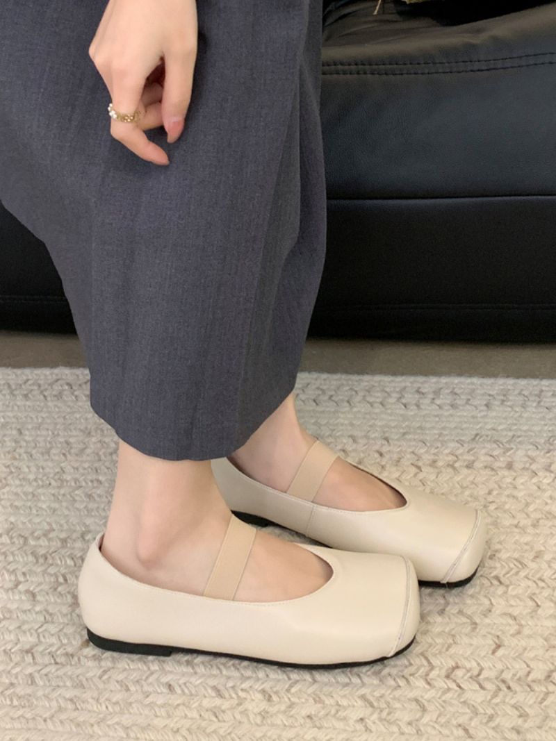 Damskie Baletki Z Kwadratowymi Noskami Płaskie Buty Ze Skóry Pu