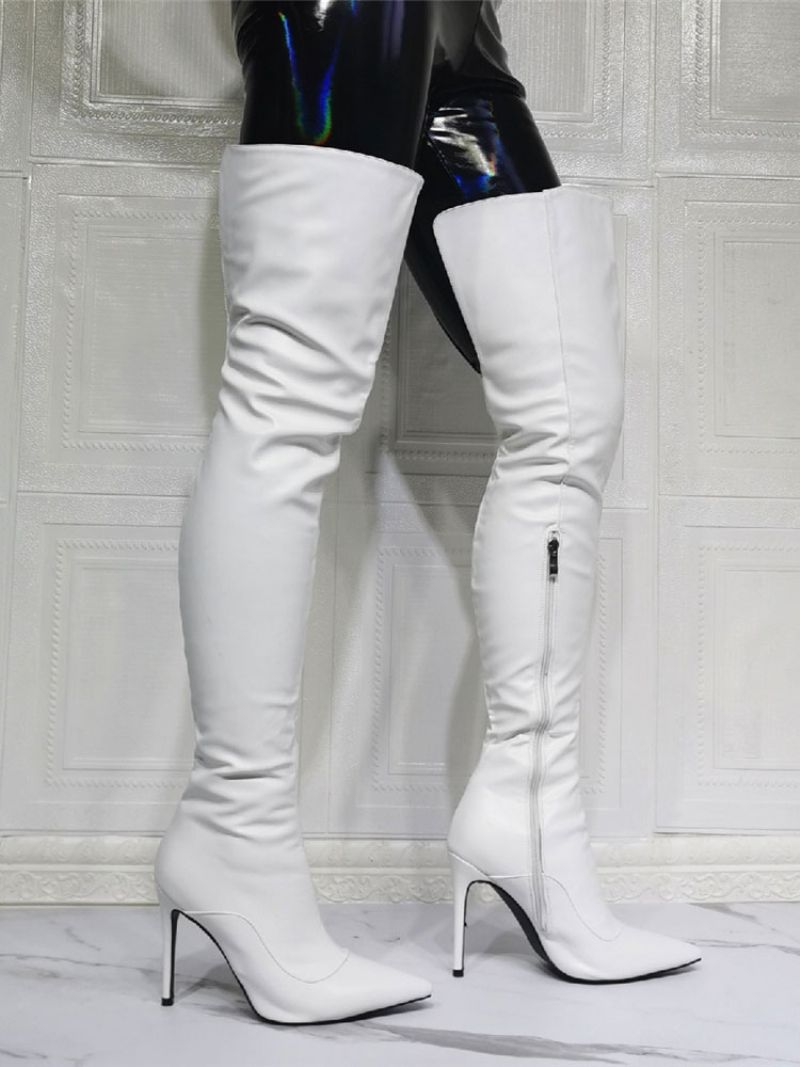 Damskie Białe Buty Na Wysokim Obcasie Za Udo