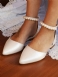 Damskie Białe Płaskie Buty Ślubne Ze Szpiczastym Noskiem I Perłami Z Paskiem Na Kostce