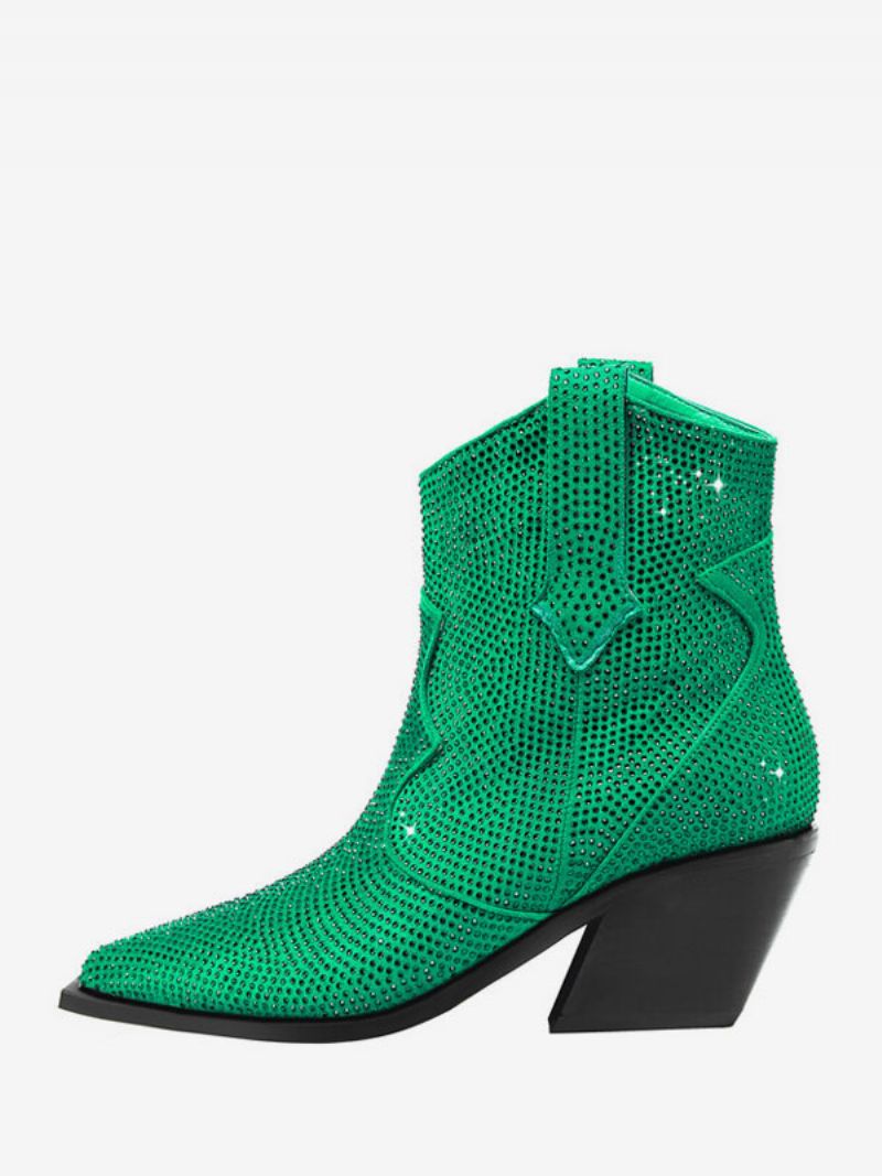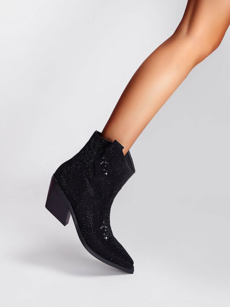 Damskie Botki Dżetów Szpiczaste Buty Na Obcasie Słupku Zachodnie