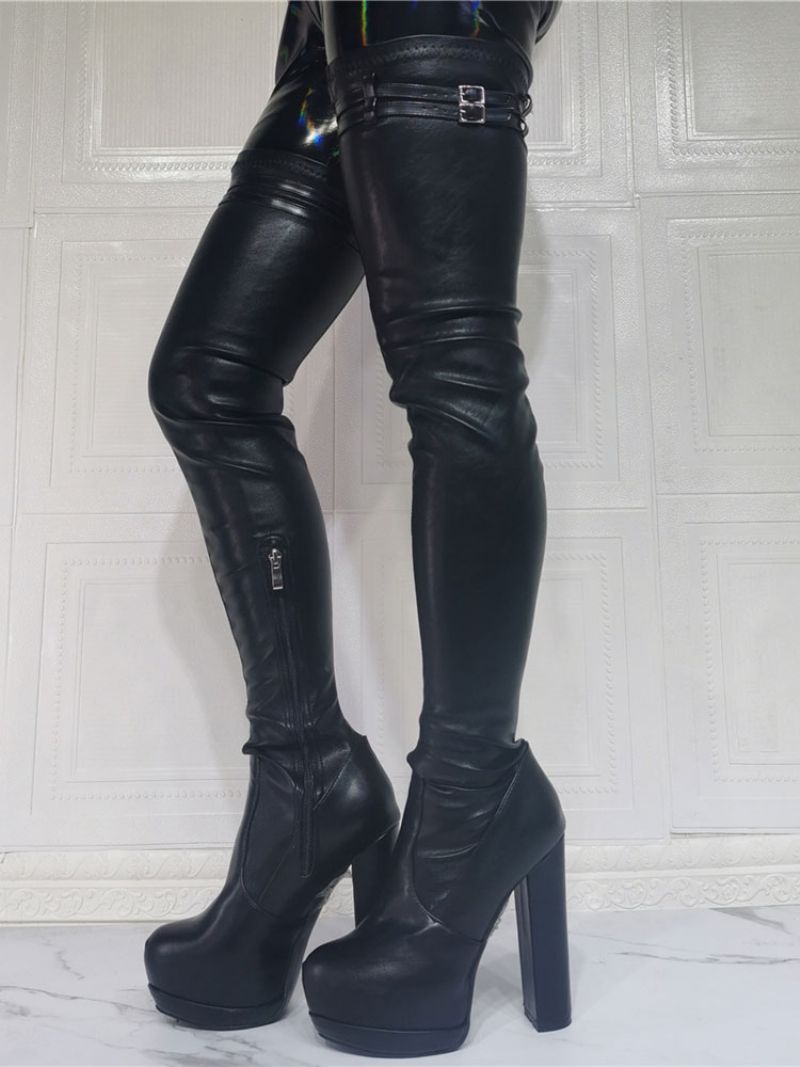 Damskie Botki Na Grubym Obcasie Platformie W Kolorze CZarnym