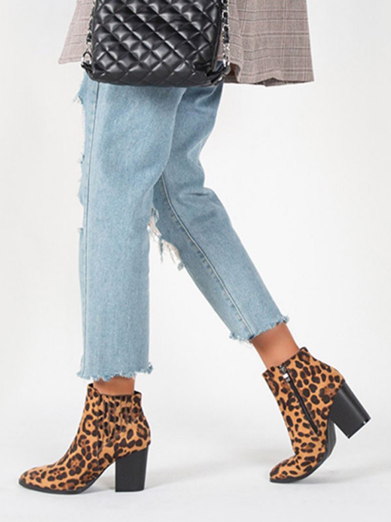 Damskie Botki Na Grubym Obcasie Z Okrągłym Noskiem
