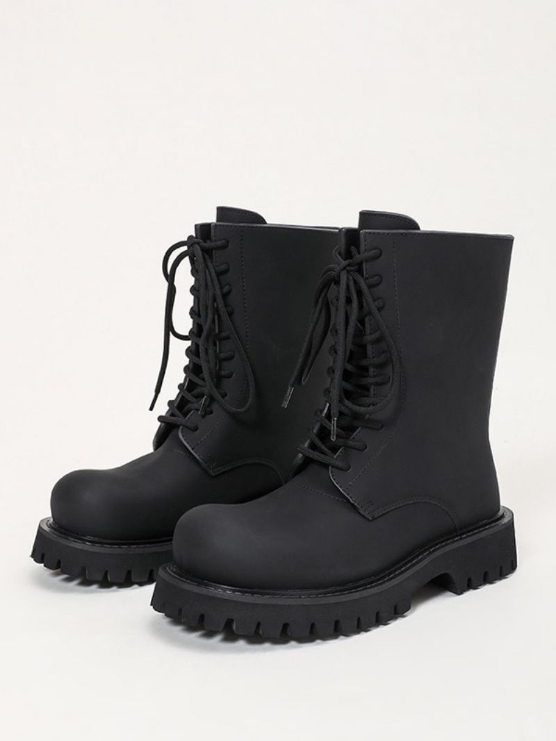 Damskie Botki Na Grubym Obcasie Ze Skóry Pu Z Okrągłym Noskiem