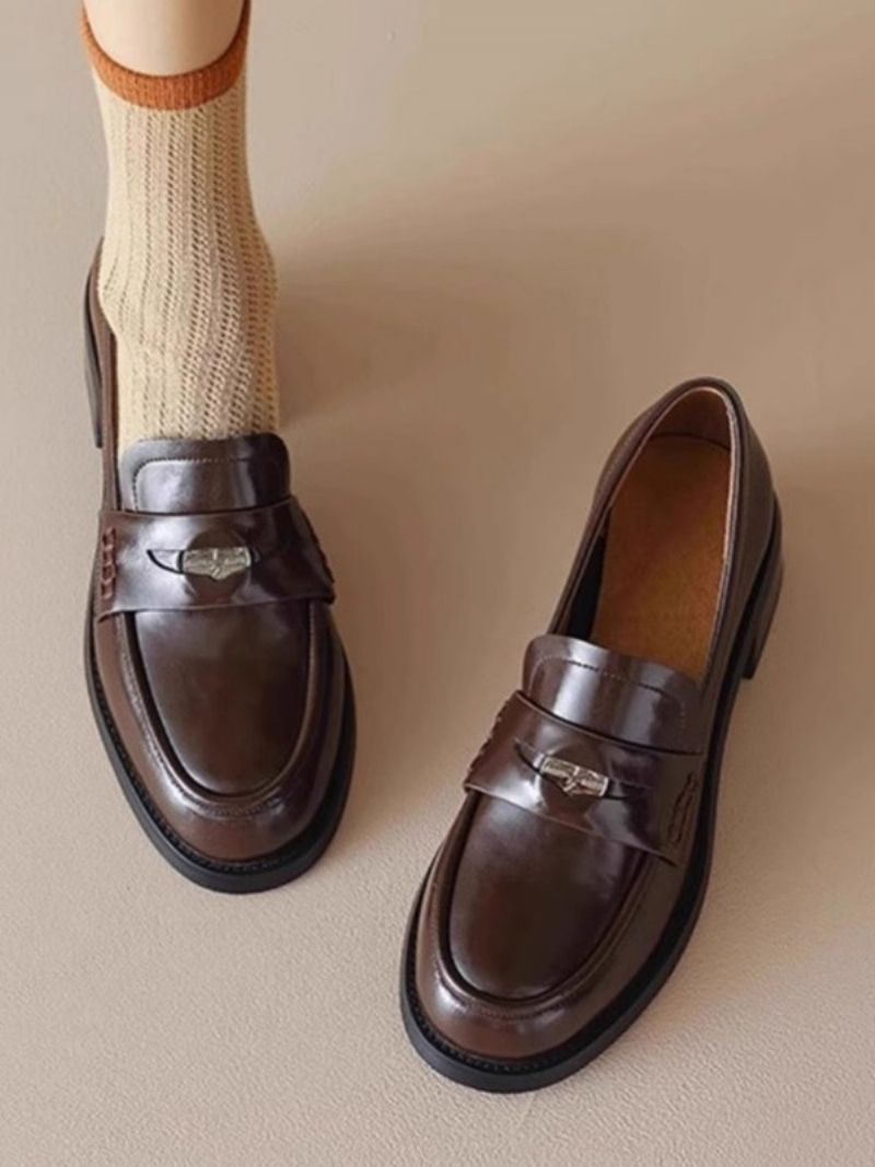 Damskie Brązowe Mokasyny Z Okrągłymi Noskami Wsuwane Na Mokasynach Typu Penny