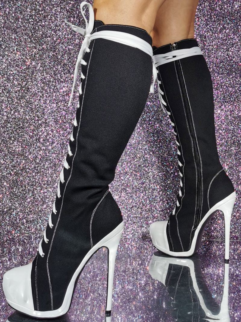 Damskie Buty Do Kolan Na Płóciennym Obcasie Szpilce