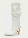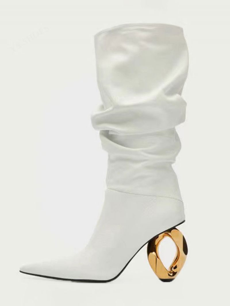 Damskie Buty Do Połowy Łydki Srebrne Ze Szpiczastym Noskiem Na Niskim Obcasie O Specjalnym Kształcie