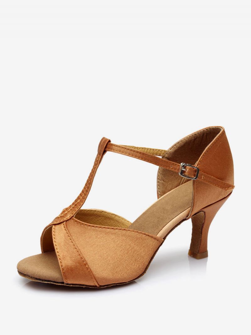 Damskie Buty Do Tańca Latynoamerykańskiego Satynowe Obcasy Morelowe Towarzyskiego Peep Toe