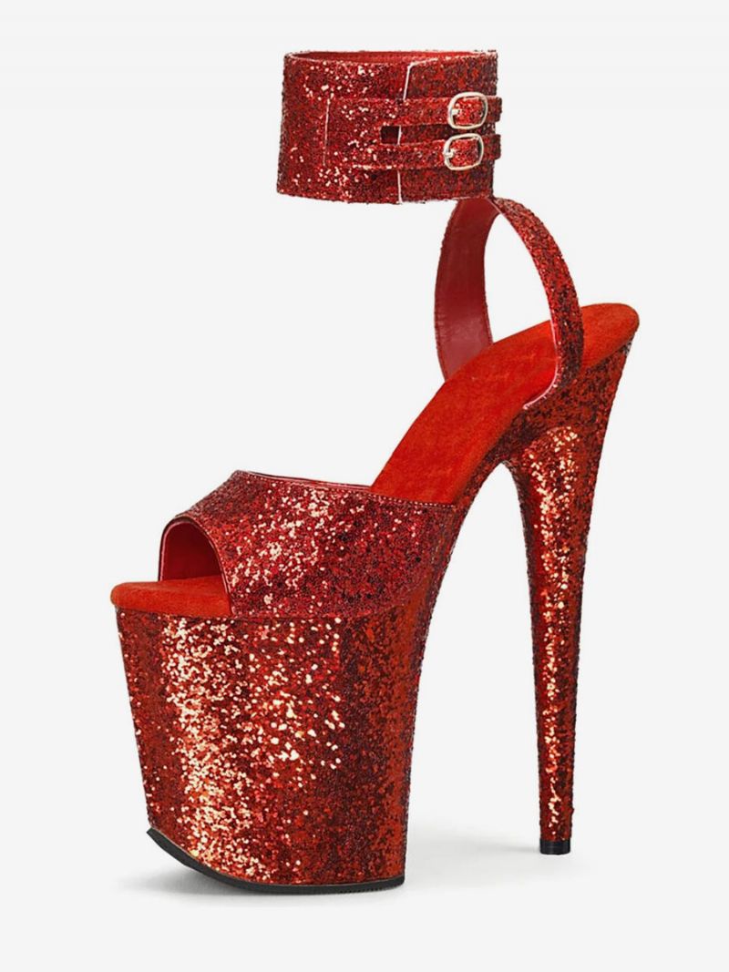 Damskie Buty Do Tańca Na Rurze Seksowne Sandały Wysokim Obcasie Piwna Skóra Peep Toe Szpilki Striptizerki