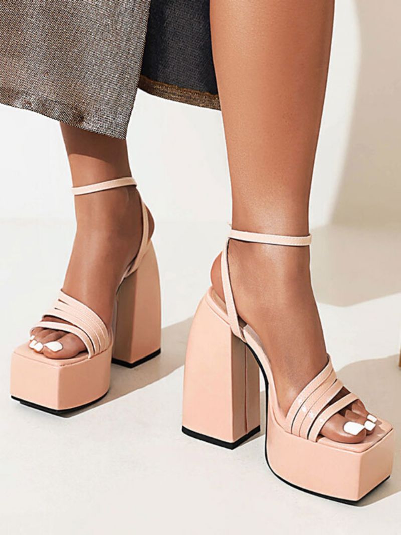 Damskie Buty Na Platformie Z Paskami Grubym Obcasie Słupku Studniówkę