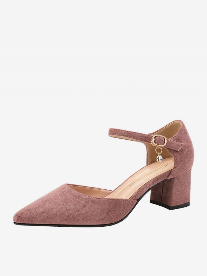 Damskie Buty Na Średnim Obcasie Szpiczaste Noski Masywny Obcas Wsuwane Fantastyczne Metalowe Detale Zamszowa Skóra Delikatne Różowe CZółenka
