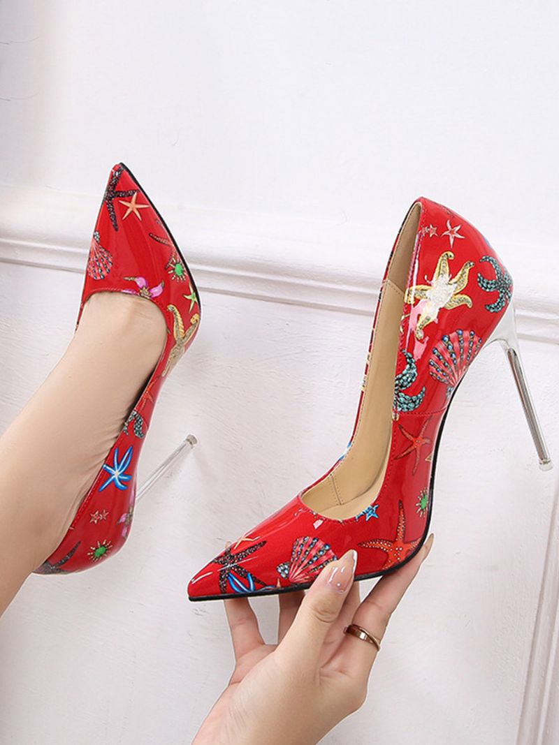 Damskie Buty Na Wysokim Obcasie CZółenka Wsuwane Eleganckie Szpilki Ze Szpiczastym Noskiem Skóra Pu