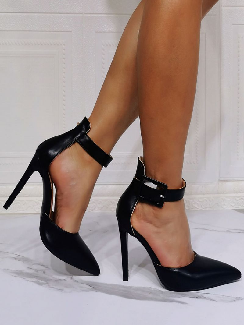 Damskie Buty Na Wysokim Obcasie Party CZarne Szpiczaste Szpilce Pu Górne Wieczorowe