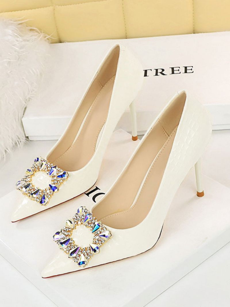 Damskie Buty Na Wysokim Obcasie Szpilka CZółenka Ze Skóry Pu