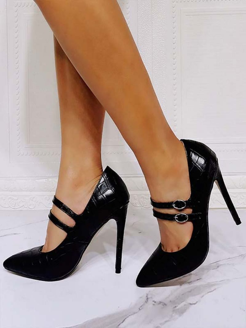 Damskie Buty Na Wysokim Obcasie Ze Szpiczastym Noskiem Szpilka Eleganckie CZarne Szpilki Mary Jane