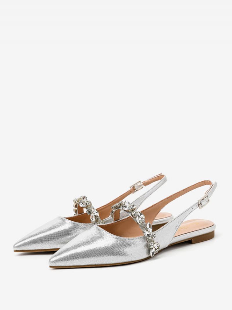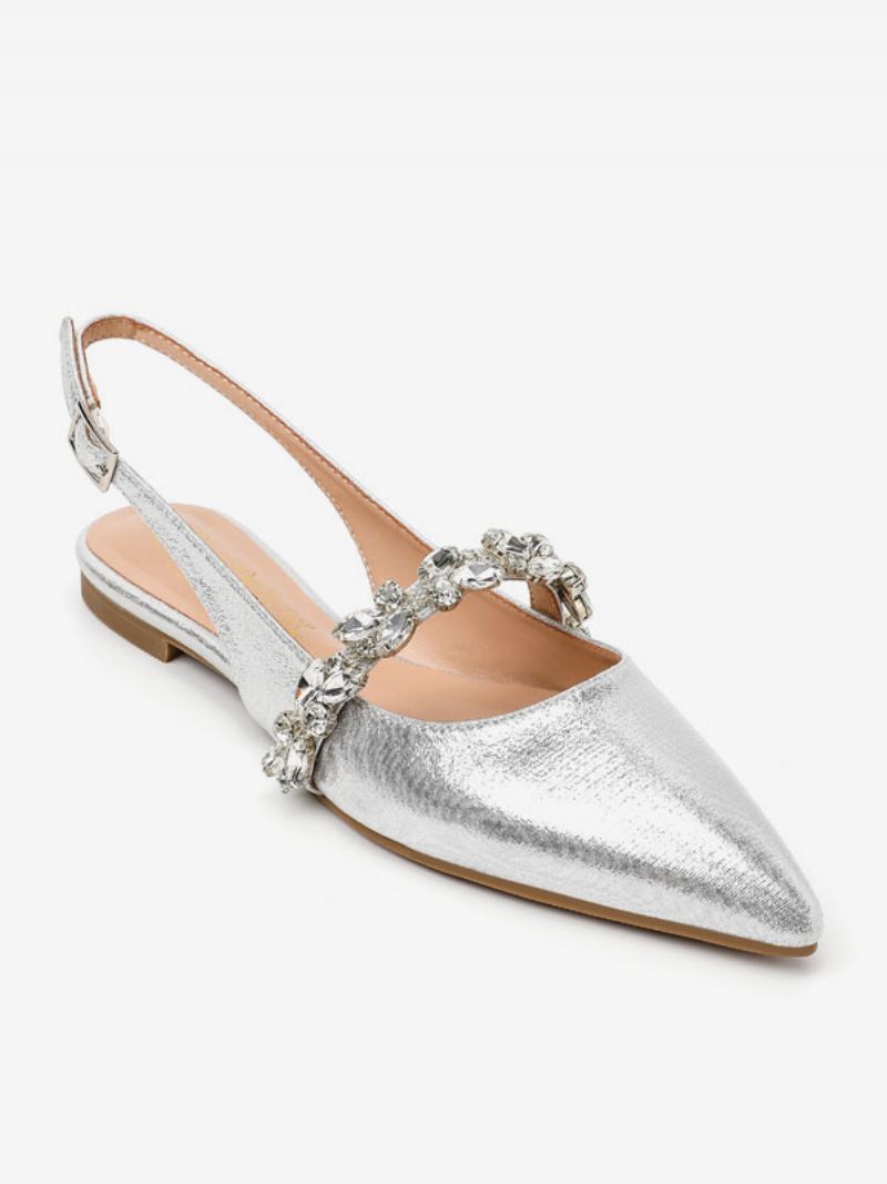 Damskie Buty Ślubne Cekinowe Tkaniny Srebrne Szpiczaste Łańcuszki Na Palcach Płaskie