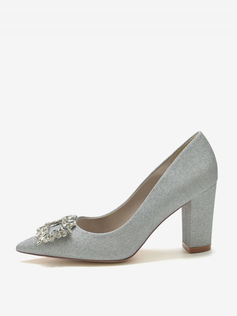 Damskie Buty Ślubne CZółenka Cekinowe Tkaniny Ze Szpiczastymi Noskami Dżetów