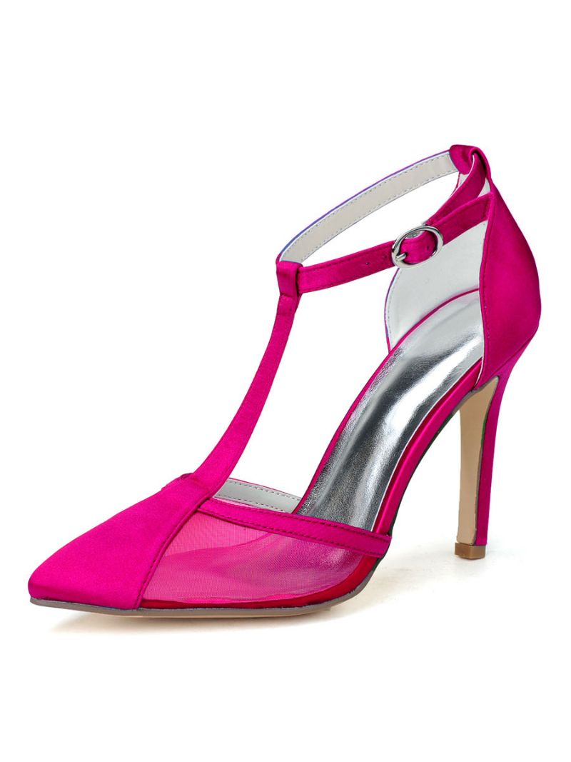 Damskie Buty Ślubne CZółenka Na Obcasie Z Paskiem W Kształcie Litery T