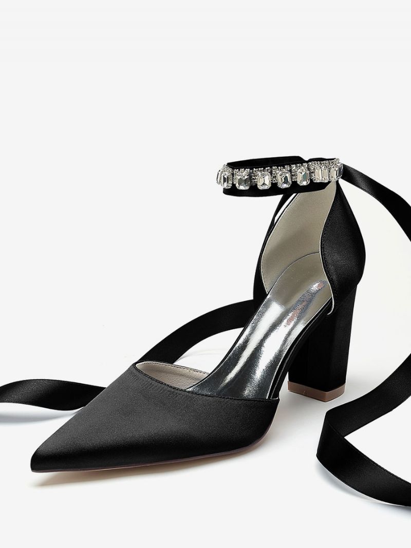 Damskie Buty Ślubne CZółenka Satynowe Szpiczaste Noski