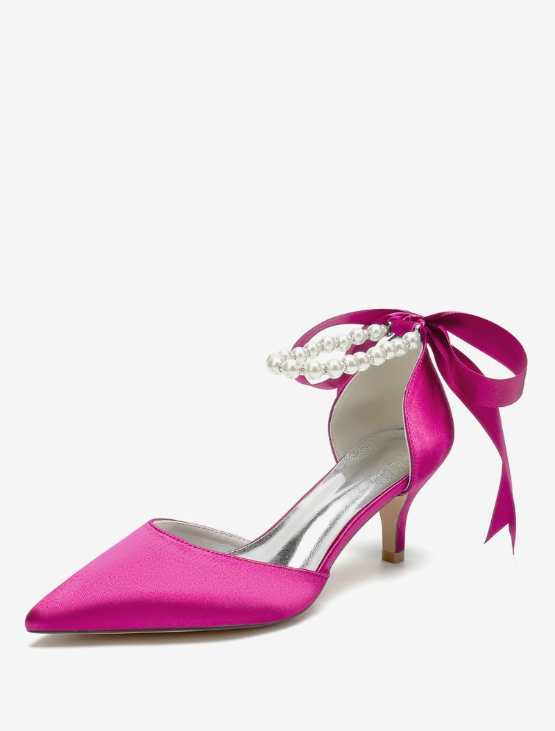 Damskie Buty Ślubne CZółenka Satynowe Szpiczaste Perły