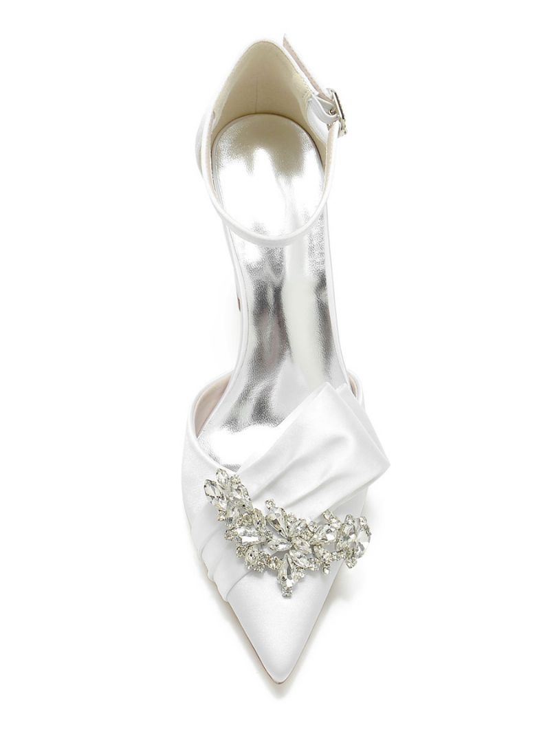 Damskie Buty Ślubne Dżetów Satynowe Szpiczaste Na Grubym Obcasie