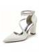 Damskie Buty Ślubne Perły CZółenka Na Grubym Obcasie Z Satyny