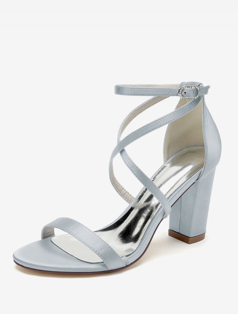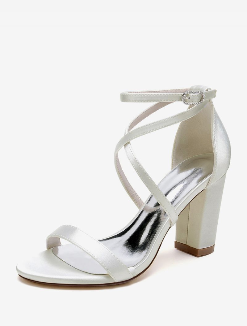 Damskie Buty Ślubne Satynowe Białe Sandały Z Odkrytymi Palcami