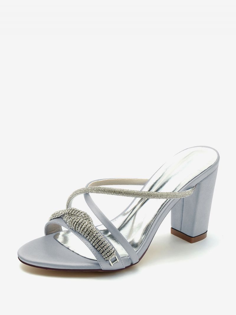 Damskie Buty Ślubne Satynowe Srebrne Kryształki Sandały Z Odkrytymi Palcami
