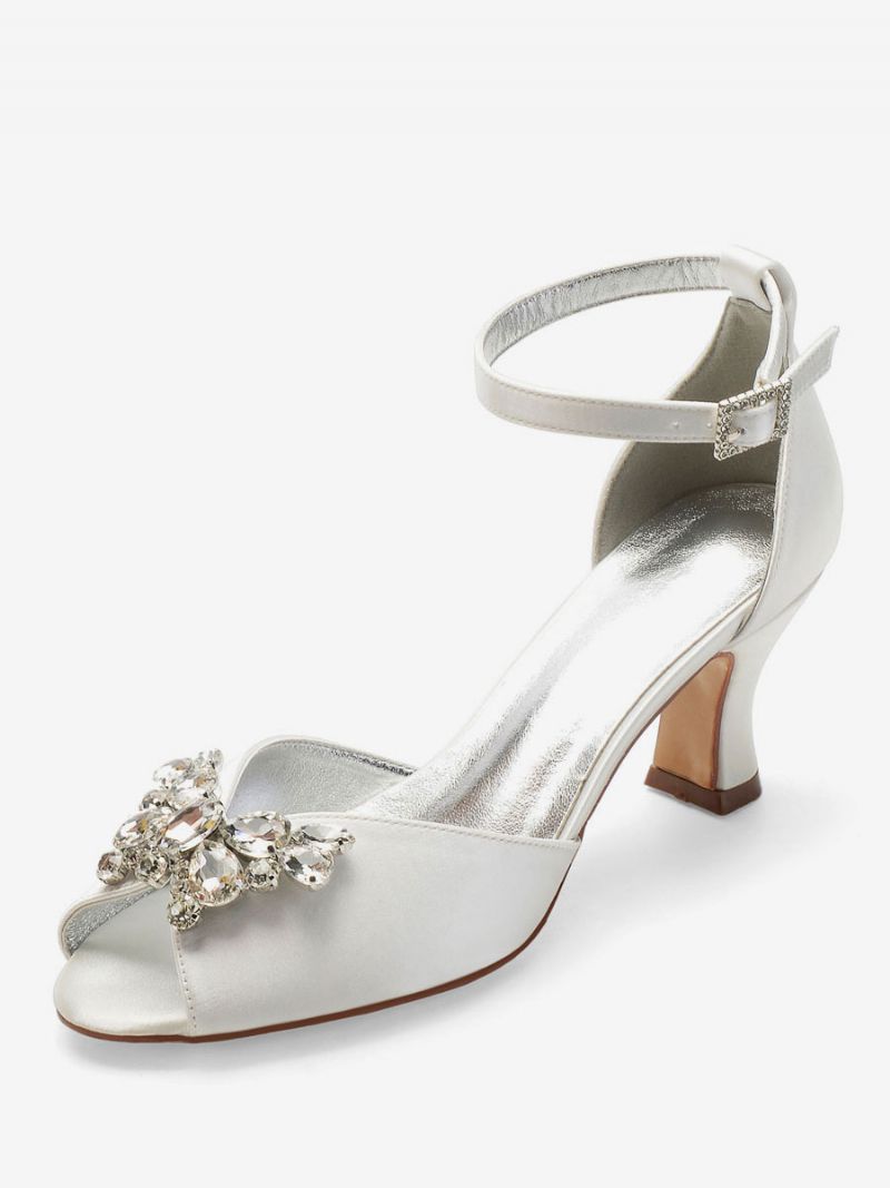 Damskie Buty Ślubne Z Odkrytymi Palcami Paskiem Na Kostkę Grubym Niskim Obcasem