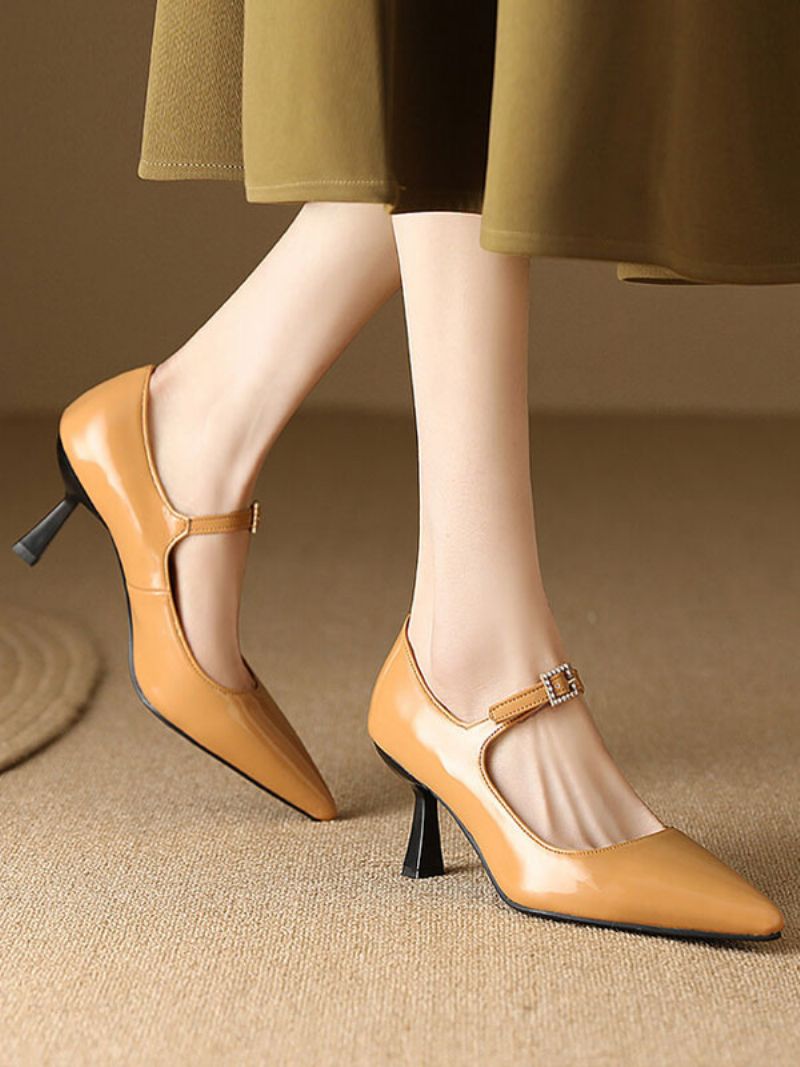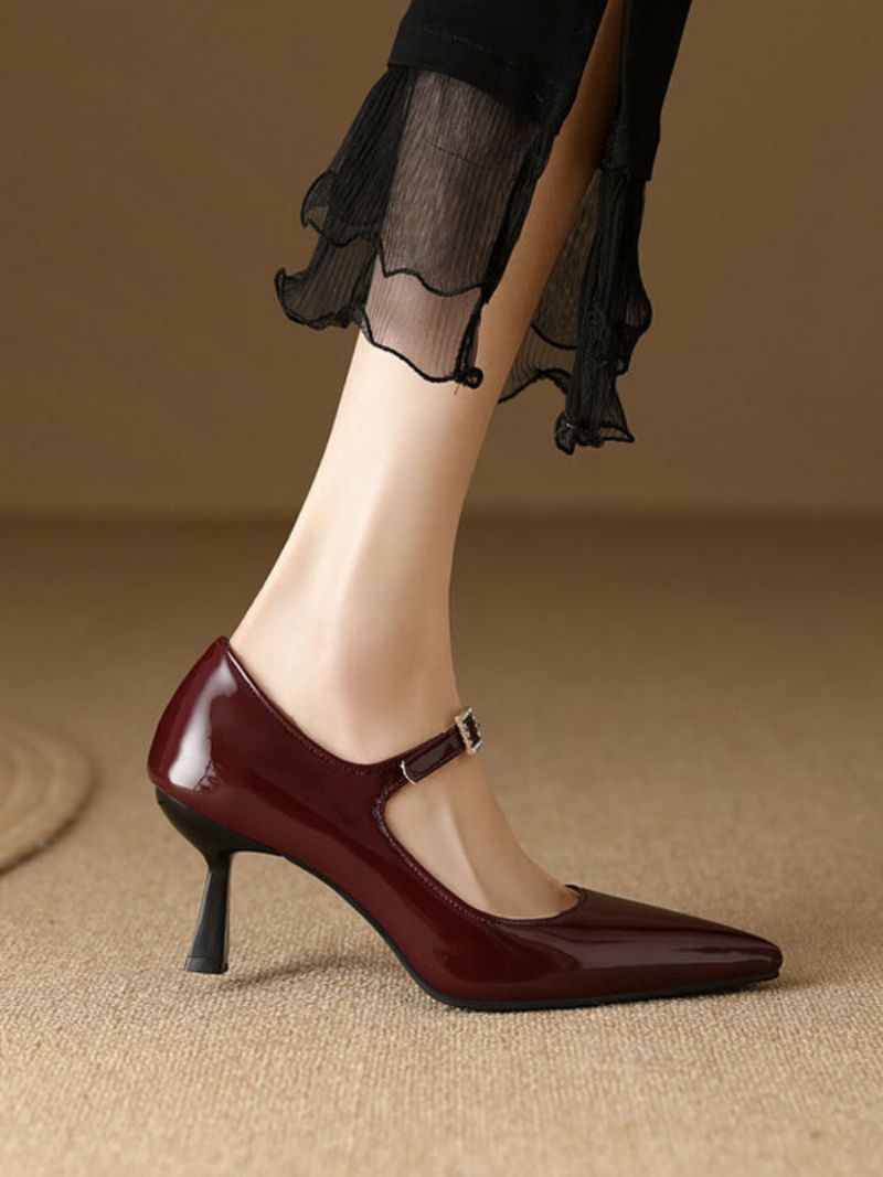 Damskie Buty W Stylu Vintage Burgundowe Lakierowane Ze Szpiczastym Noskiem