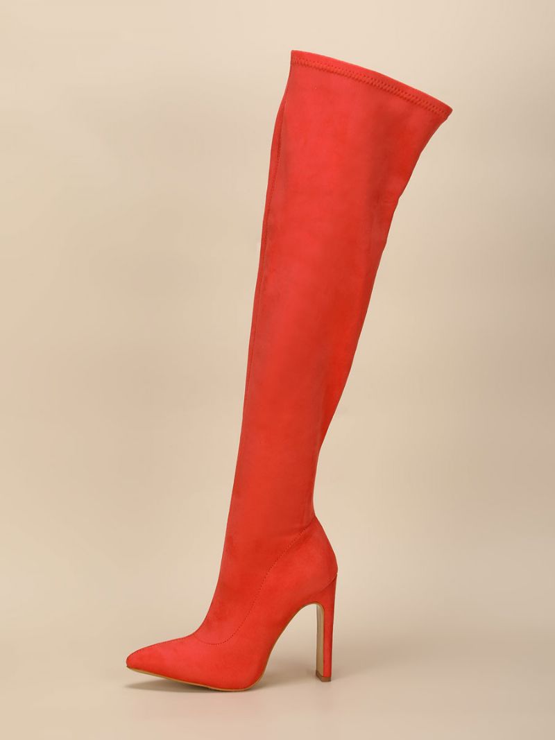 Damskie Buty Za Kolano Chunky Heel Pointed Toe Mikro Zamszowe Górne Pomarańczowe CZerwone Udo