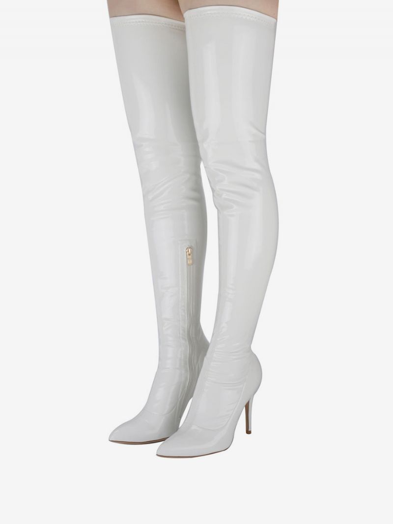 Damskie Buty Za Kolano Na Szpilce Z Lakierowanej Jasnej Skóry