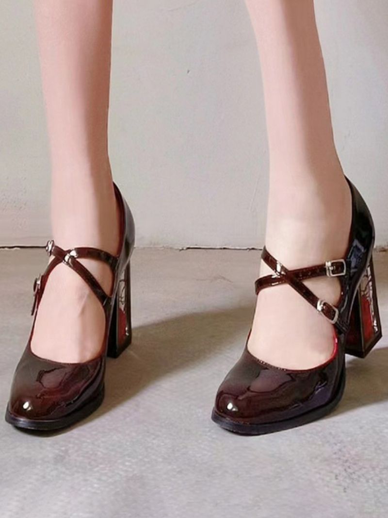 Damskie CZarne Buty Mary Jane Z Okrągłymi Noskami I Klamrą Edtail CZółenka Na Słupku