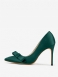 Damskie CZarne Buty Na Wysokim Obcasie Satynowe CZółenka Ze Szpicem I Kokardą Szpilce