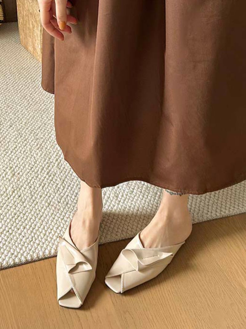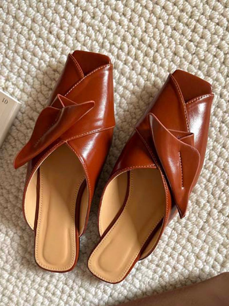 Damskie CZarne Klapki Z Kwadratowymi Noskami I Pu Bez Pleców Wsuwane Kapcie