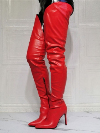 Damskie CZarne Kozaki Do Kolan Szpiczaste Noski Metalowe Detale Wysokie Obcasy Z Prostym Wałem