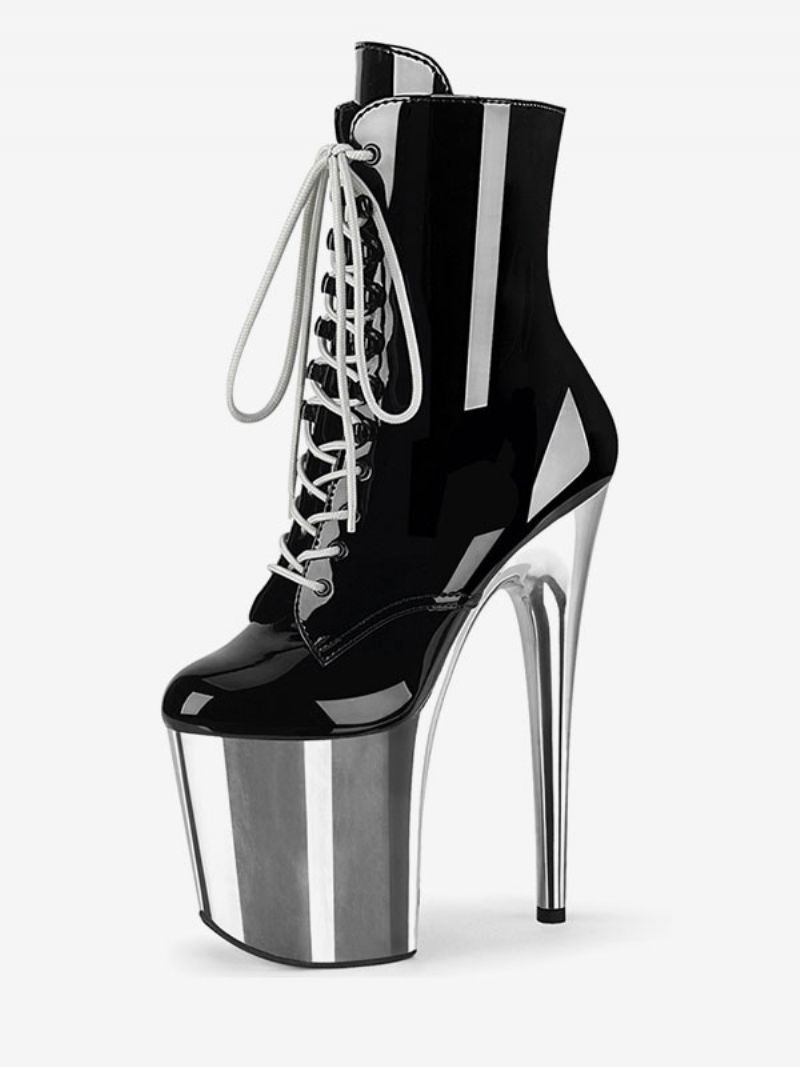 Damskie CZarne Seksowne Buty Na Wysokim Obcasie Platforma Z Okrągłymi CZubkami Sznurowane Niebo Wysokie Do Tańca Rurze W Dużych Rozmiarach