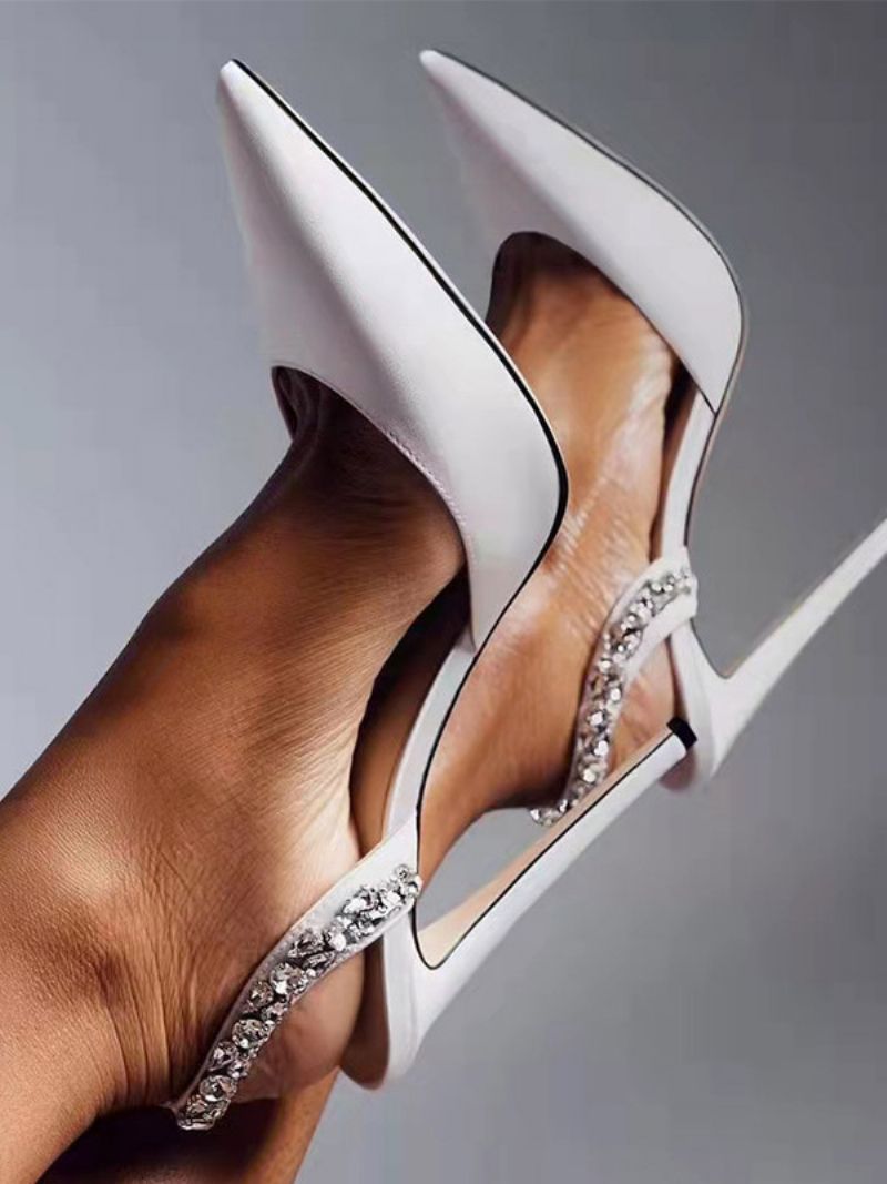 Damskie CZarne Szpilki Ze Szpiczastymi Noskami I Kryształkami CZółenka Imprezowe Bez Pięty