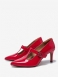 Damskie CZółenka Mary Janes CZerwone Szpiczaste Skórzane Na Szpilce Kotek Obcasie