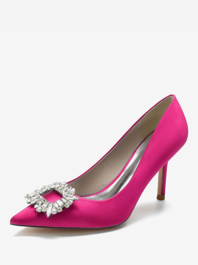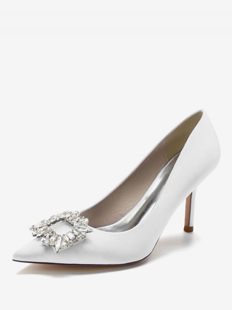 Damskie CZółenka Ślubne Na Obcasie Z Kryształkami Satyny
