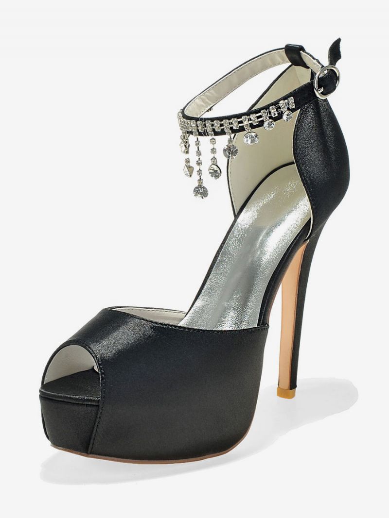 Damskie CZółenka Ślubne Na Platformie Z Paskiem Kostce Peep Toe Szpilki W Kolorze Satyny