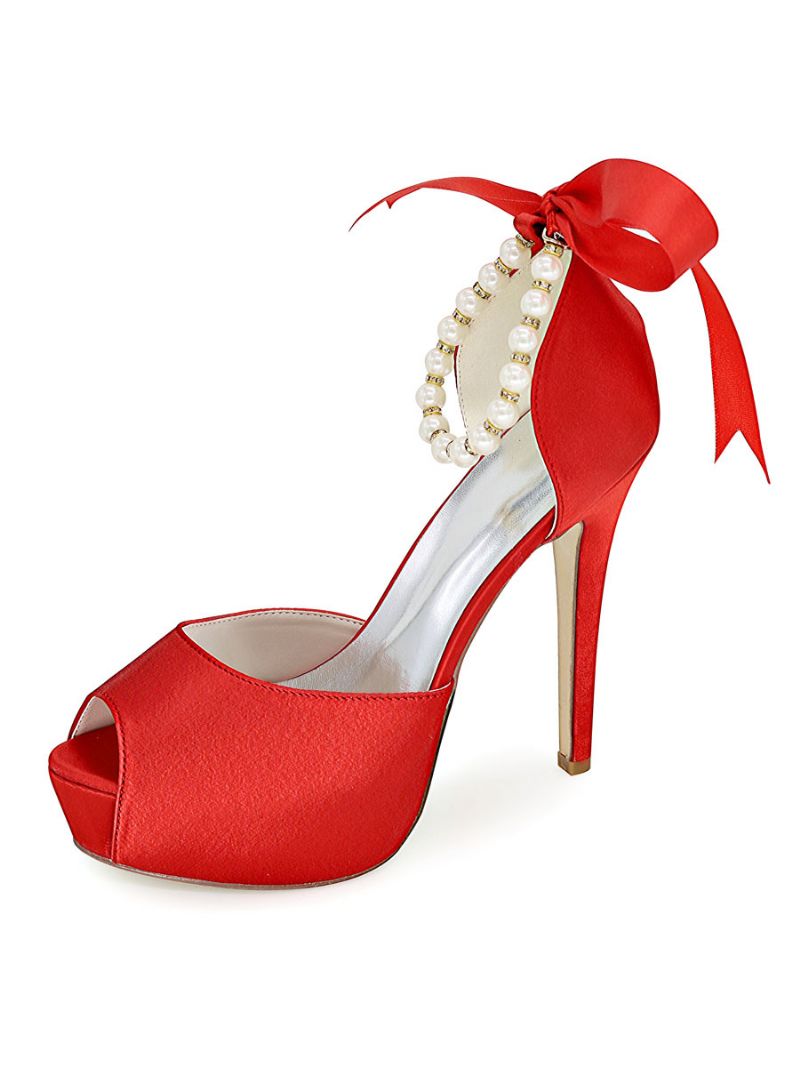 Damskie CZółenka Ślubne Na Platformie Z Perłami I Sznurowaniem Obcasie Odkrytymi Palcami