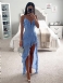 Damskie Jasnoniebieskie Sukienki Maxi Z Nieregularnymi Falbankami I Wycięciem