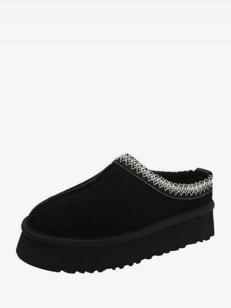 Damskie Kapcie Zimowe Płaskie Buty Śniegowe Z Okrągłymi Noskami