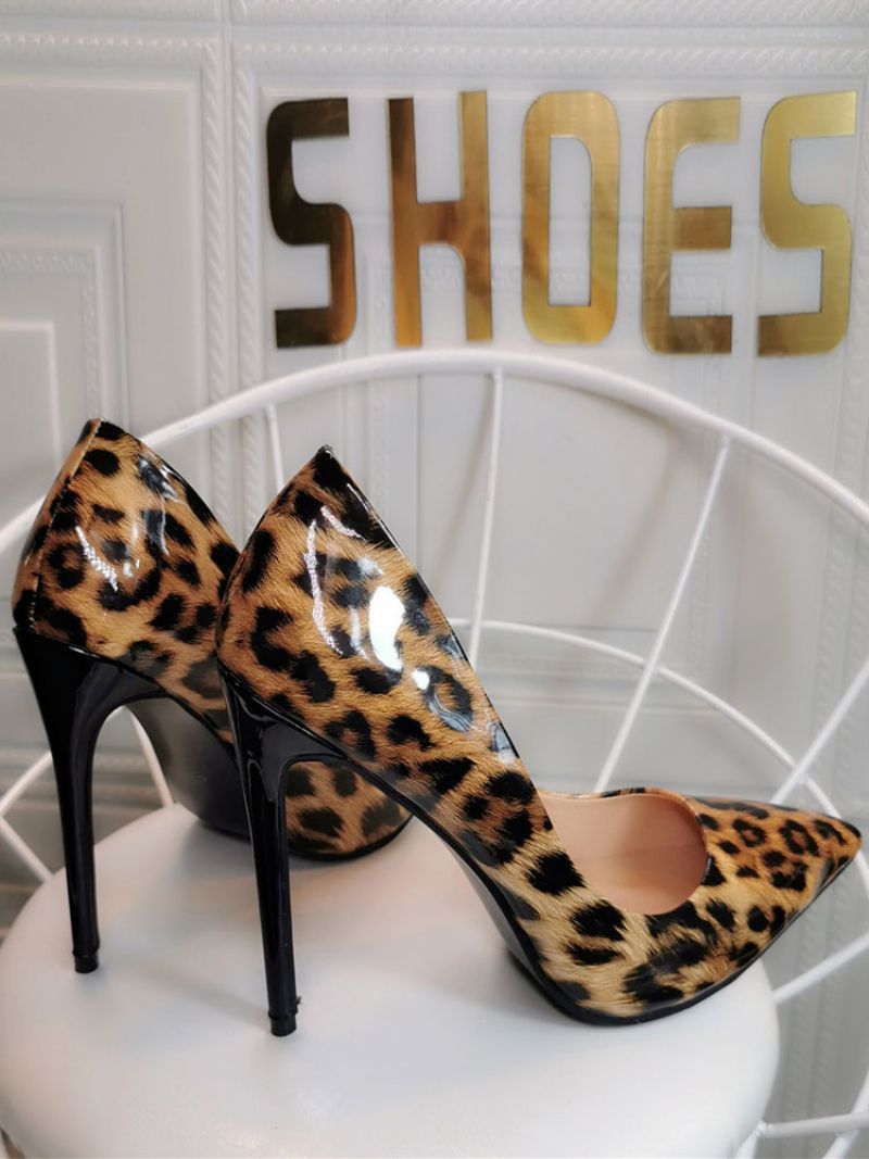 Damskie Kawowe Brązowe CZółenka Szpilka Ze Szpiczastym Noskiem Nadruk W Cętki Patent Pu Casual Seksowne Obcasy