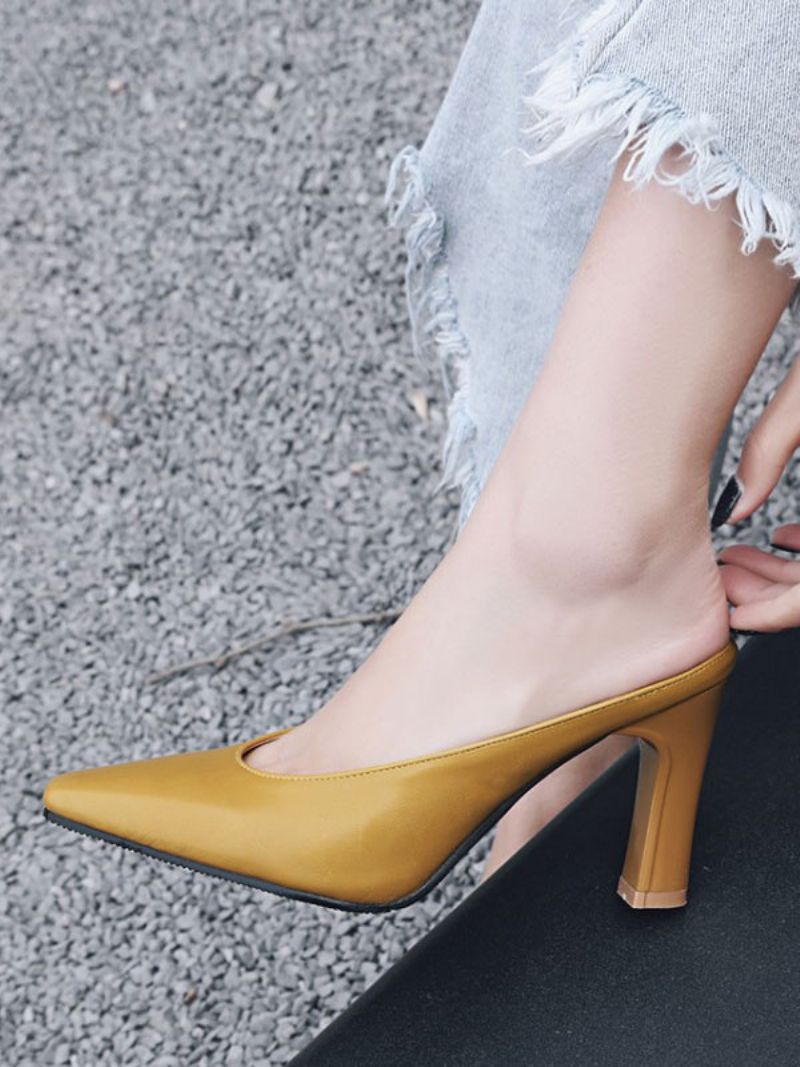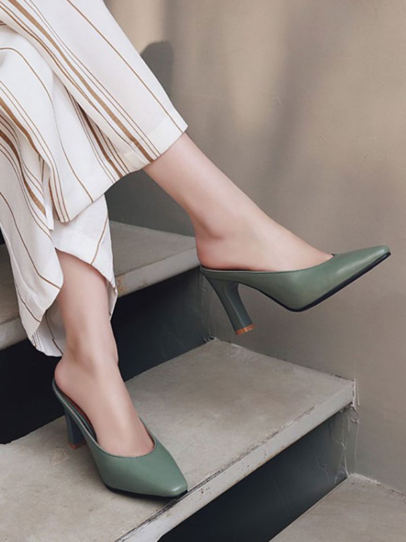 Damskie Klapki Drewniaki Skórzane Buty Wsuwane Typu Szałwia Ze Szpiczastym Noskiem
