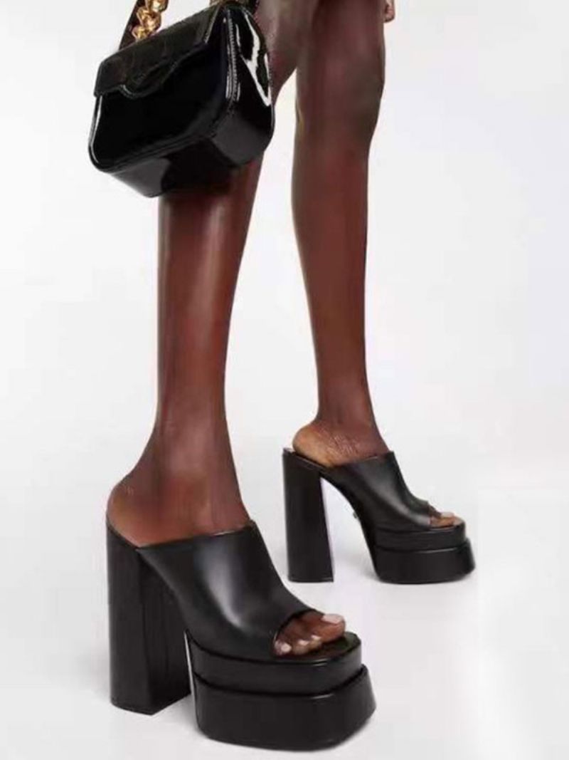 Damskie Klapki Na Grubym Obcasie Platformie Z Kwadratowymi Noskami