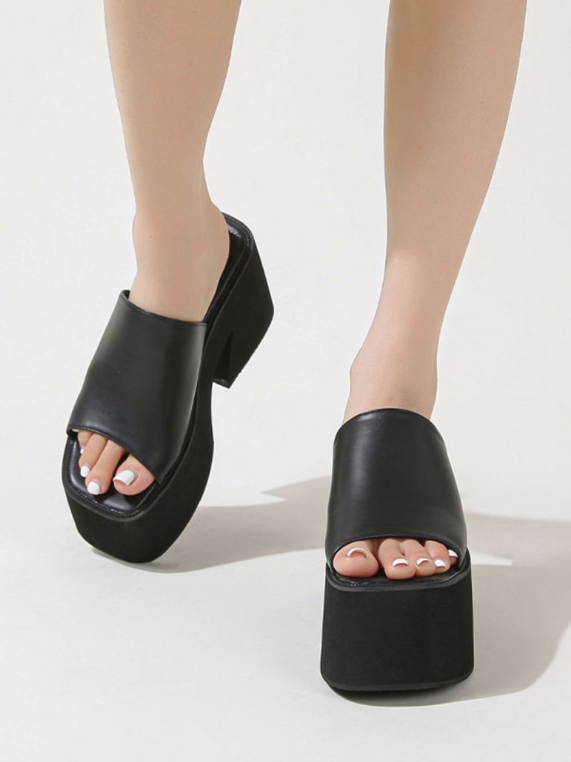 Damskie Klapki Na Obcasie Pu Skórzane Grubym Z Odkrytymi Palcami